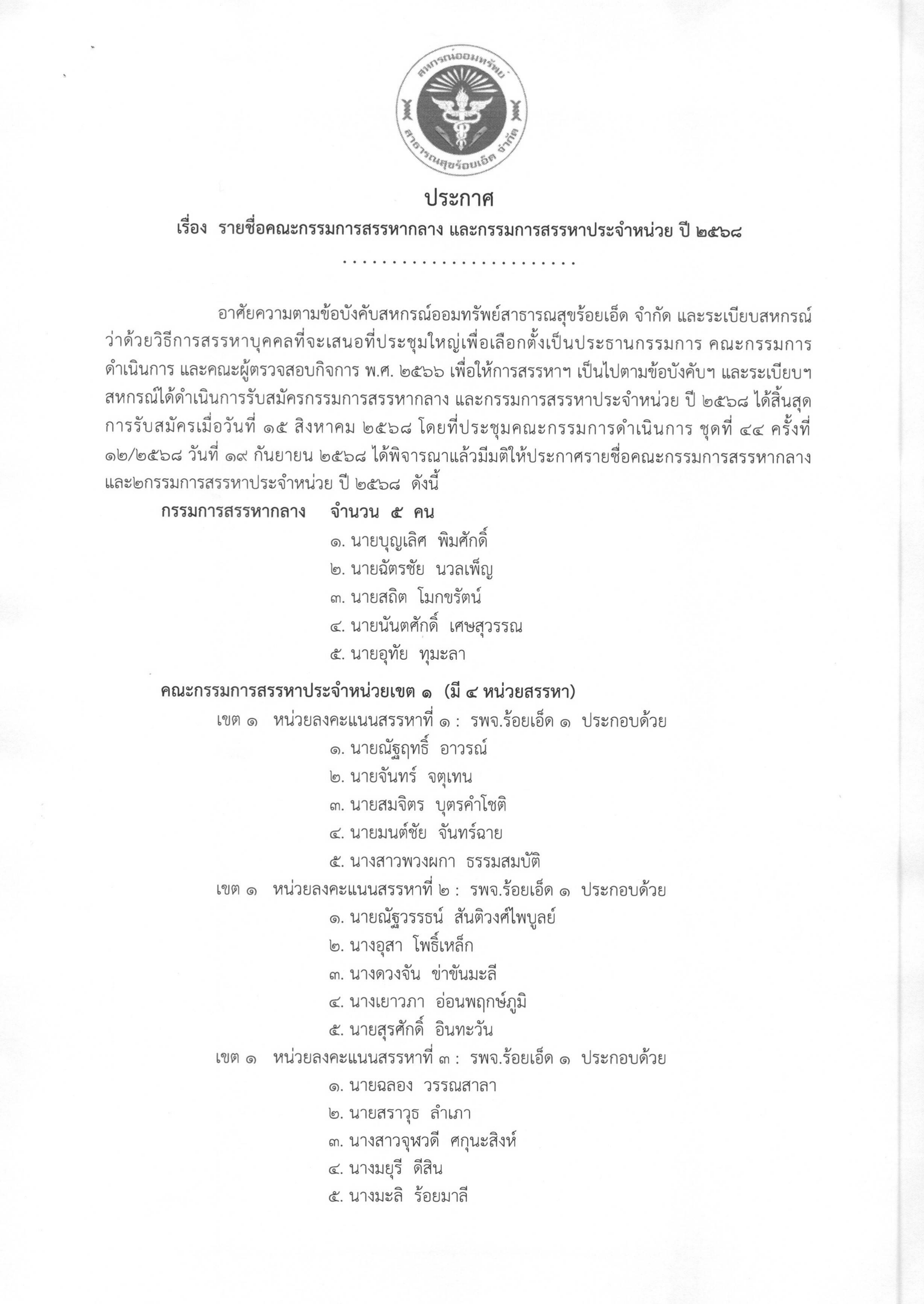 ประกาศ รายชื่อคณะกรรมการสรรหากลาง และกรรมการสรรหาประจำหน่วย ปี 2568