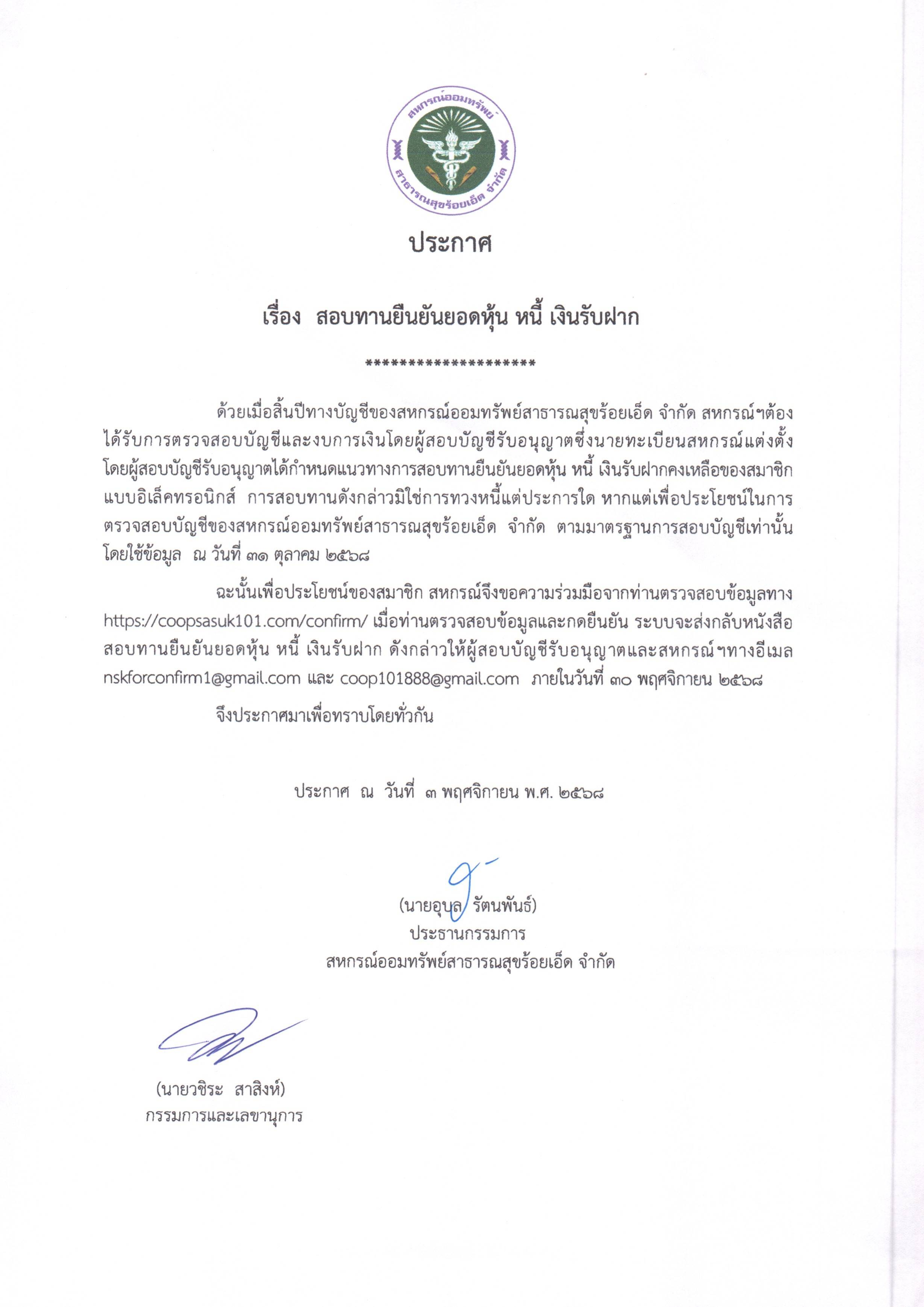 ประกาศ สอบทานหุ้น หนี้ เงินฝาก ณ 31 ตุลาคม 2568