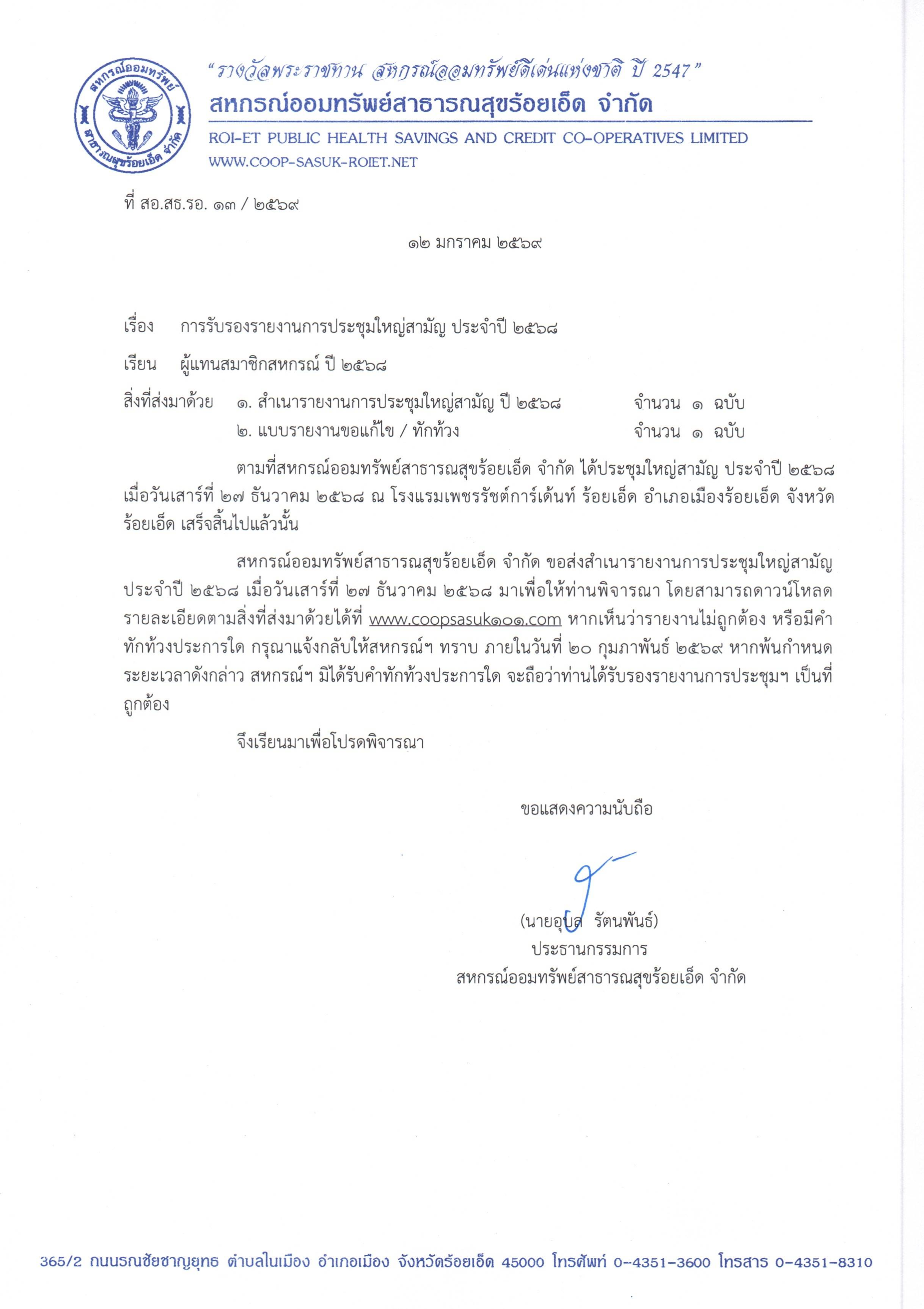 สรุปรายงานการประชุมใหญ่สามัญ ประจำปี 2568